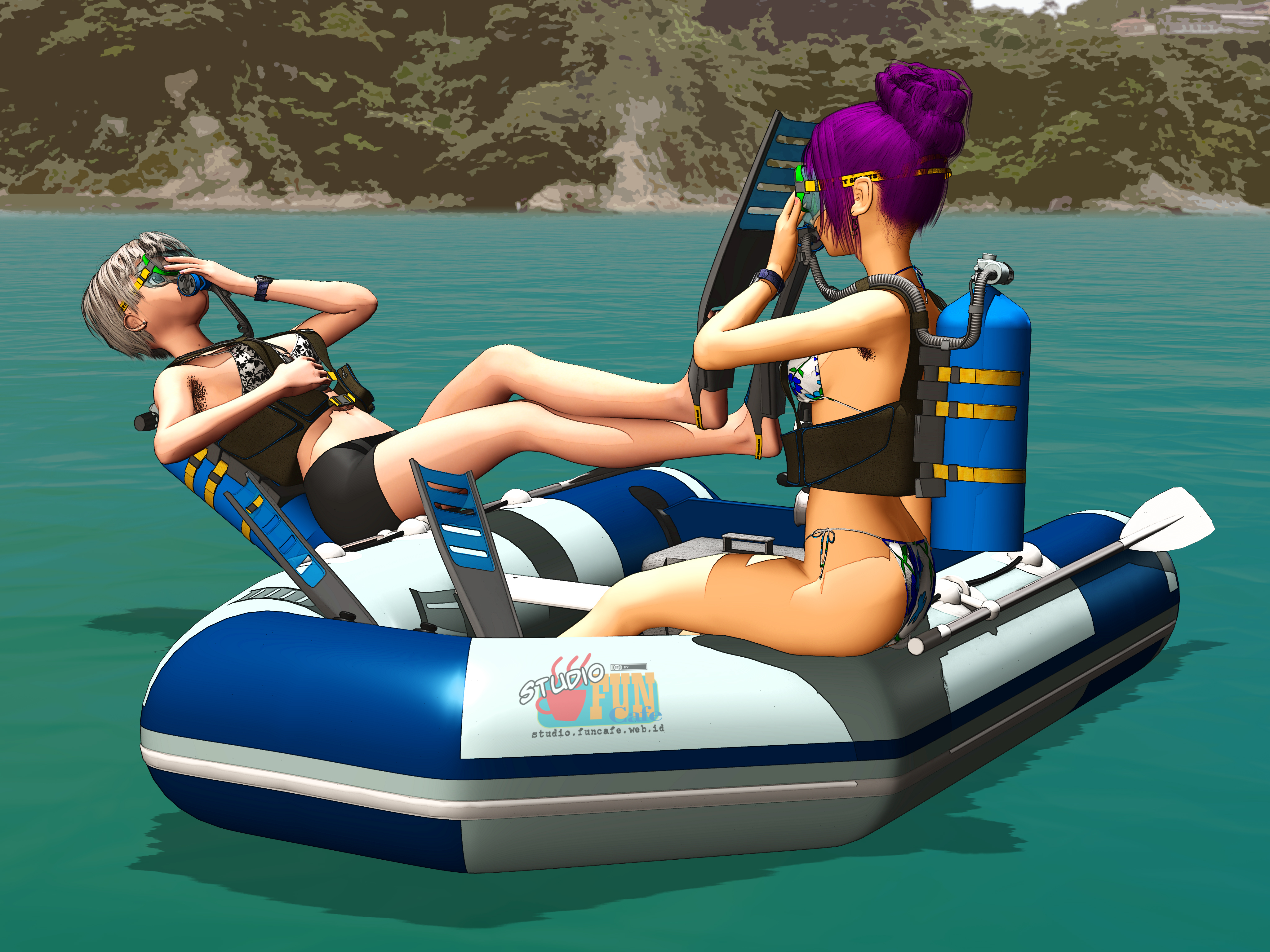 Finished: August 05, 2025 There are various entry methods in diving, one of which is the backroll entry. This method is often used when a giant stride entry is not possible, such as when entering from a small boat. To perform a backroll entry, a diver sits on the very edge of the boat hull, with one hand on the goggles and the other hand on the regulator or behind the head. After making sure there's no obstacles behind, lean back, pull legs toward the body and splash down. Today, our girls will performing this method since they are onboard a dinghy. One has already performed her backroll entry, while the other is watching and waiting for an OK sign before performing her backroll. With their careful and calculated performance, there's nothing to worry about. |