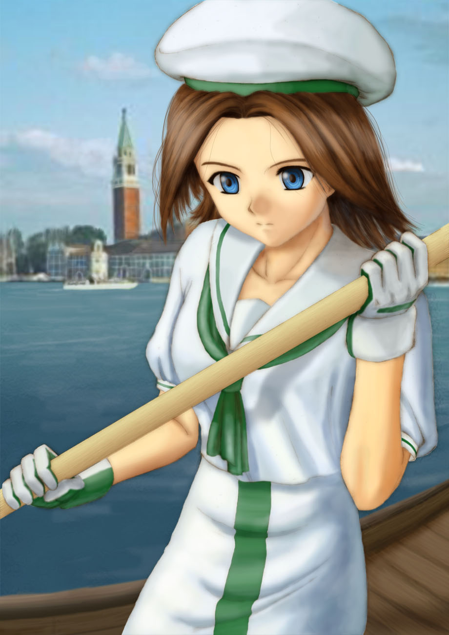 | Title: Undine Apprentice Creator: TGV This may called double fanart, a fanart of a fanart. The original idea of placing Rin as Undine can be considered a fanart, so a fanart of that Undine Rin might be called double. Confused right? Frankly, I've never thought that someone could make Rin so cute like this, it's beyond my imagination as the chara designer. Rin image has changed many times since created, from exact personality copy of Aya, a cool girl and now become cute teenager as I did in the latest revision. This fanart really captured the image that I want to see from Rin. Cute, but still cool. Anyway regarding the uniform, actually my uniform design has 2 stripes, but I think it's okay making it just one. Also I agree with the idea of removing the shirt pocket, looks better like this. One more thing, Rin eyes supposedly cyan colored like duck egg, seeing her in aquamarine blue makes her looks kindy scary, ne? |