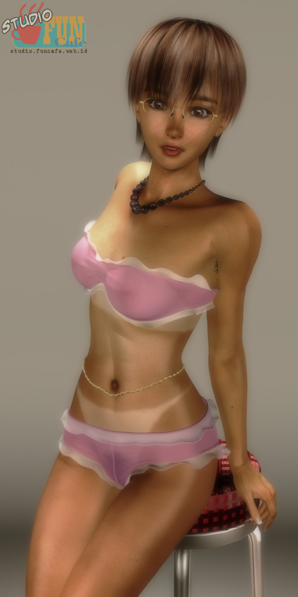 Glasses, sometimes makes you look like a geek, but sometimes it makes you look cute. I think I became addicted to this. I used Aya 6 because of her clueless expression which is needed in this scene. Initially, there're tears on her eyes but I deleted it on final render. That glasses sure really suit her face.