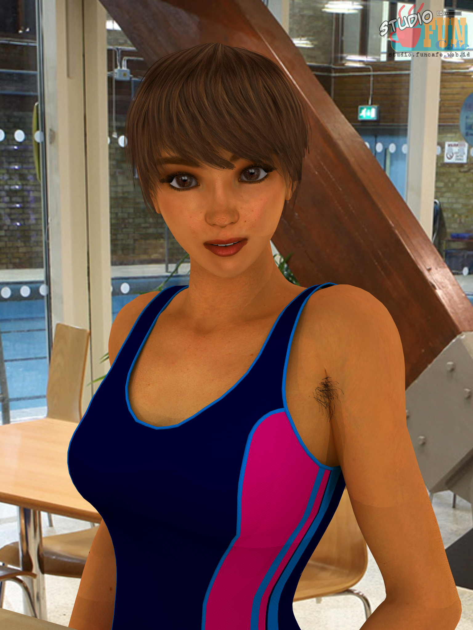 Your swimming date started from the swimming pool cafe, where both of you have relax for a while. This is the good time for you to enjoy her astonishing beauty.