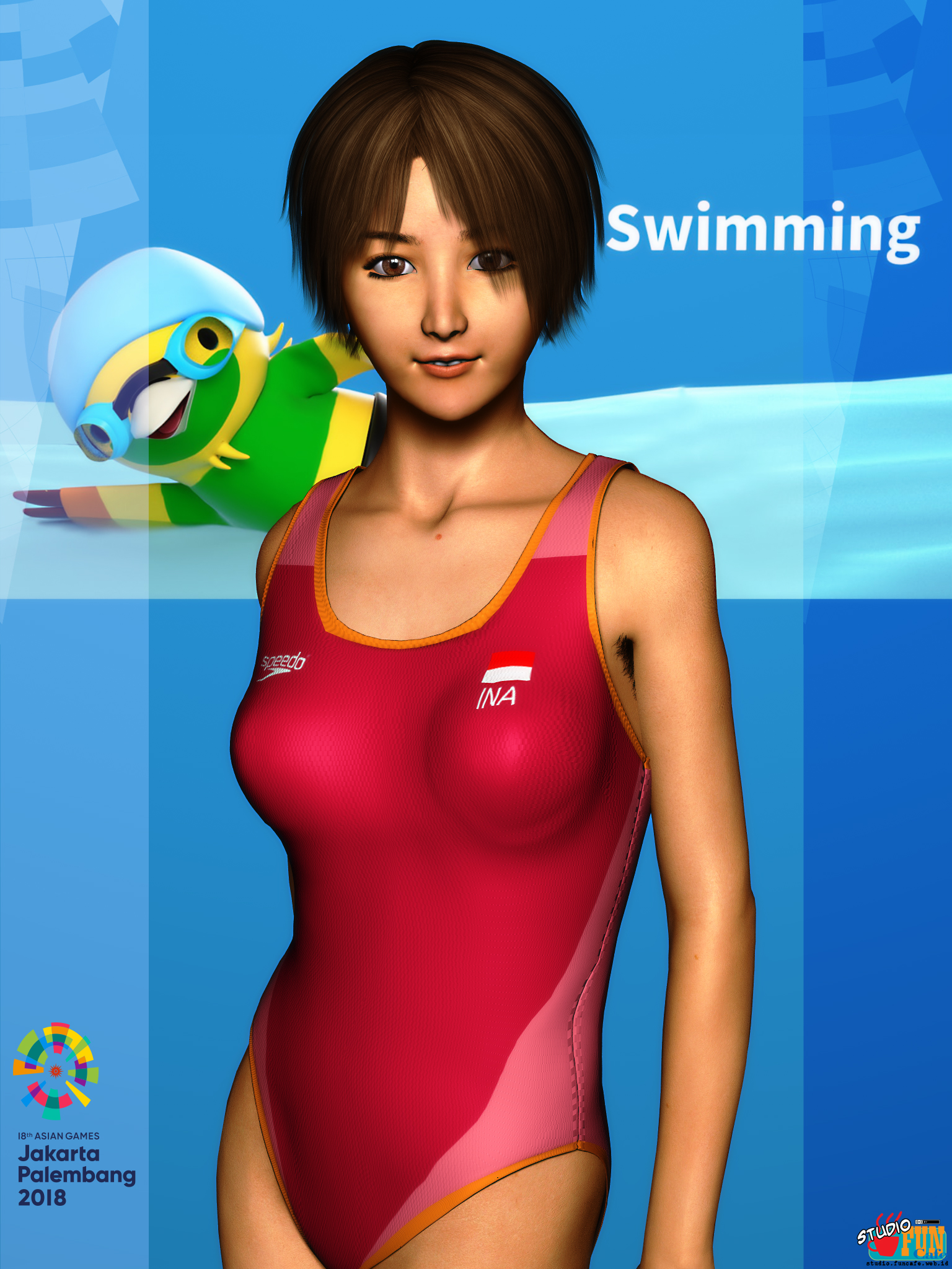 | Title: Asian Games 2018: Swimming Finished: August 23, 2018 This is fan art of 2018 Asian Games, third of the series of 4. Here is Karin in supposed be Indonesian National Swimming team outfit. Again, I couldn't found any reference of the original outfit, so I made this derived from the water polo uniform and the training swimsuit. |