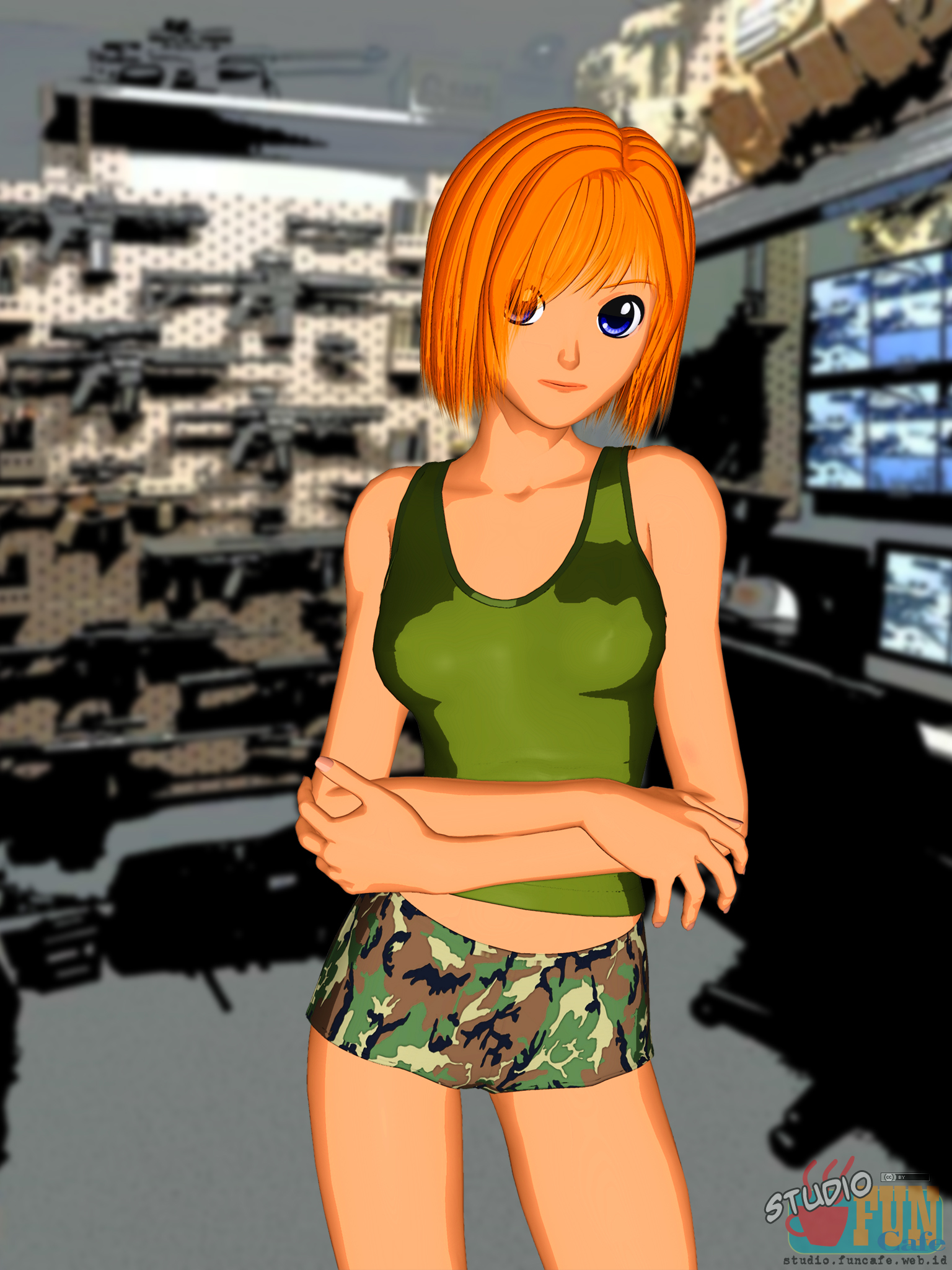 During COVID-19 pandemic, everyone must stay at home. What Rina looks like at home? For a military enthusiast, hot pants and tank top are her choice since she mostly spend her time shooting in her basement gunnery.