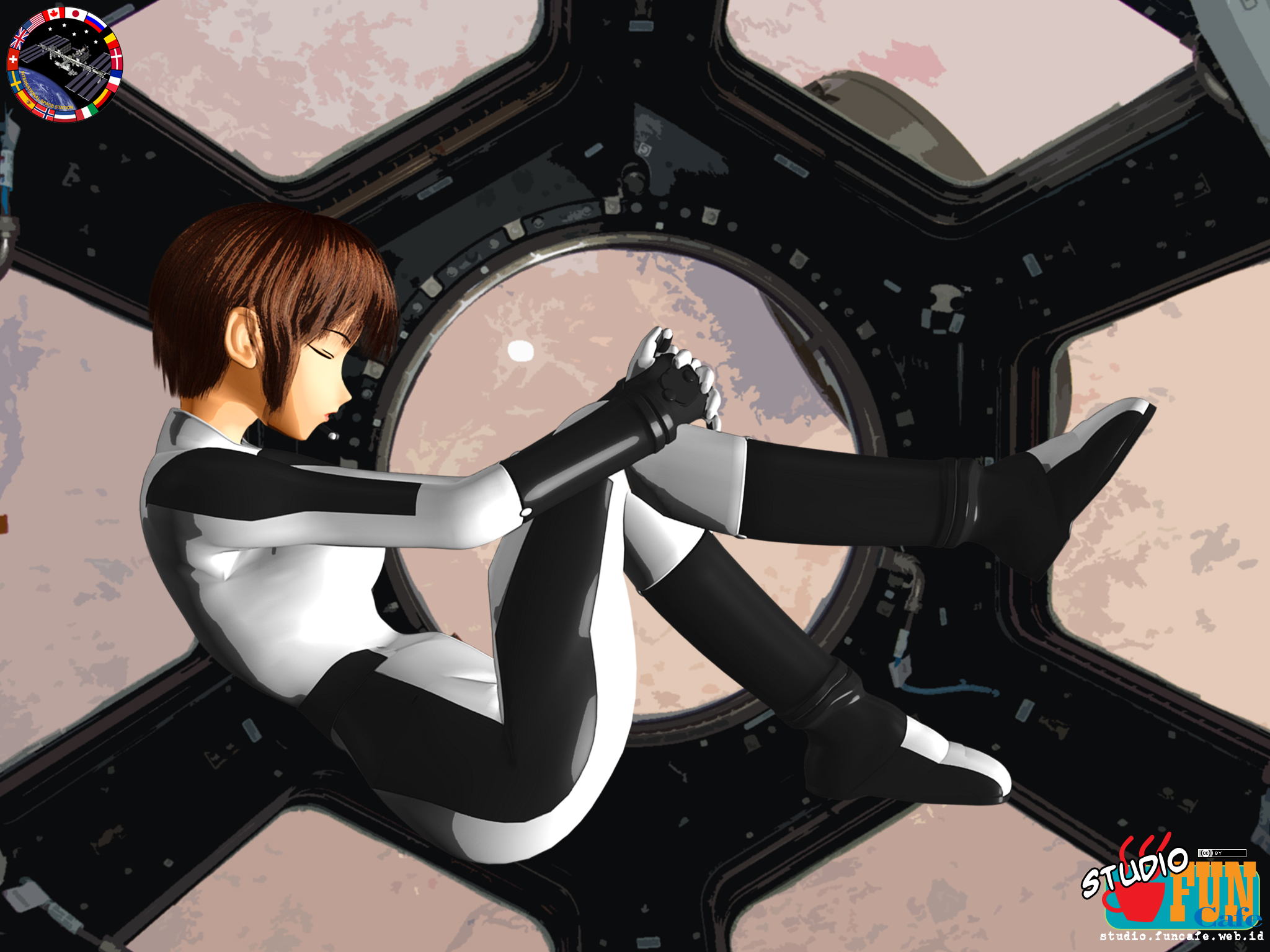 | Title: Zero Gravity Contemplation Finished: July 11, 2020 Actually this one was planned before the previous work, but I couldn't get the idea fixed until I done the previous. Originally she was wearing inner thermal suit, but then I changed to spacesuit instead. |