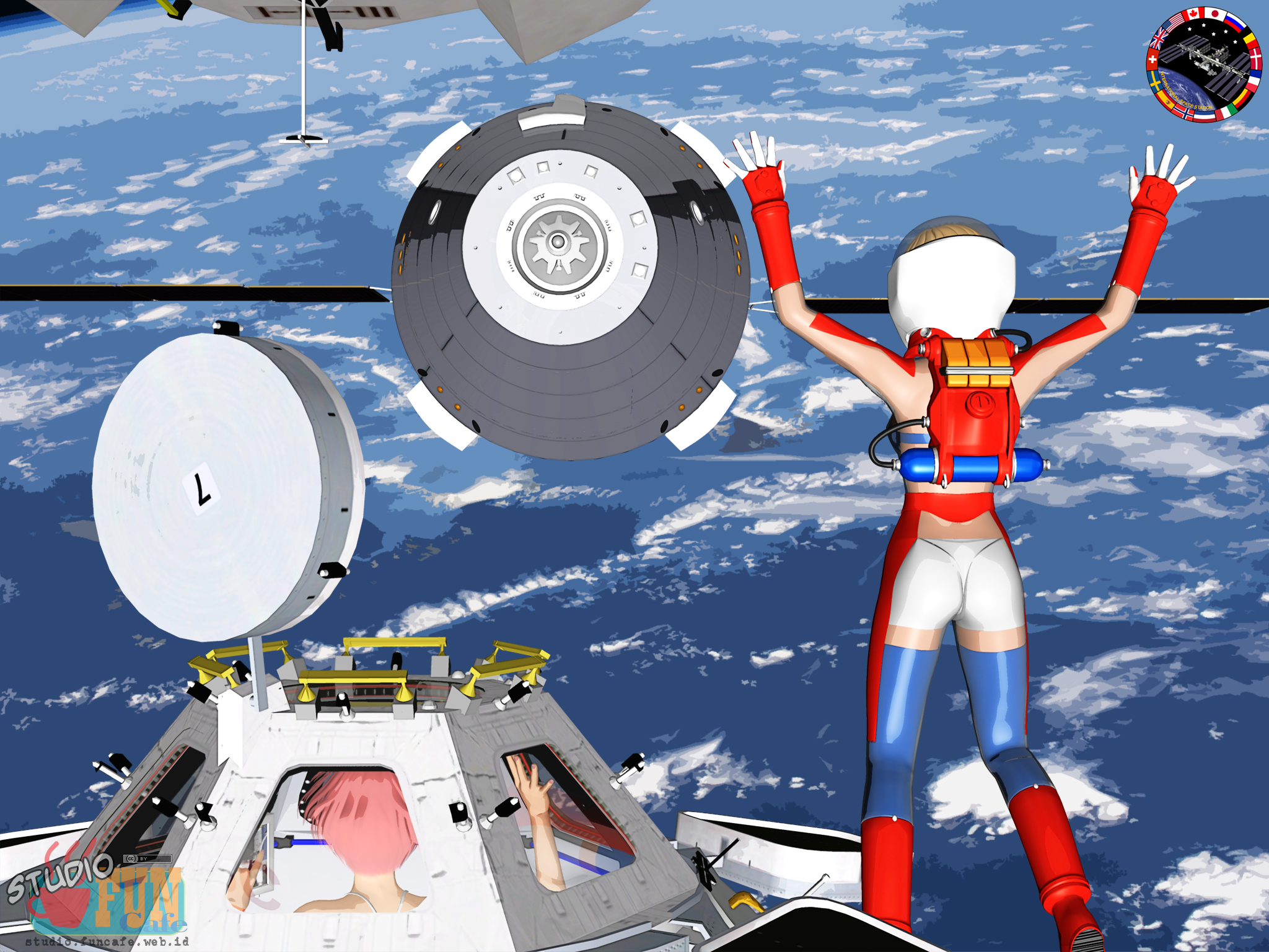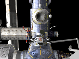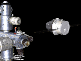 | Title: Welcome, Tovarisch Finished: May 28, 2021 This is Orel, the next generation Russian spacecraft. Designed to replace the ageing Soyuz from 2025 onward. The (fictional) future ISS has docking facility in the forward part that can accommodate 4 Orel class spacecrafts simultaneously. For this welcoming party, we use Russian flag colored vanity spacesuit. |