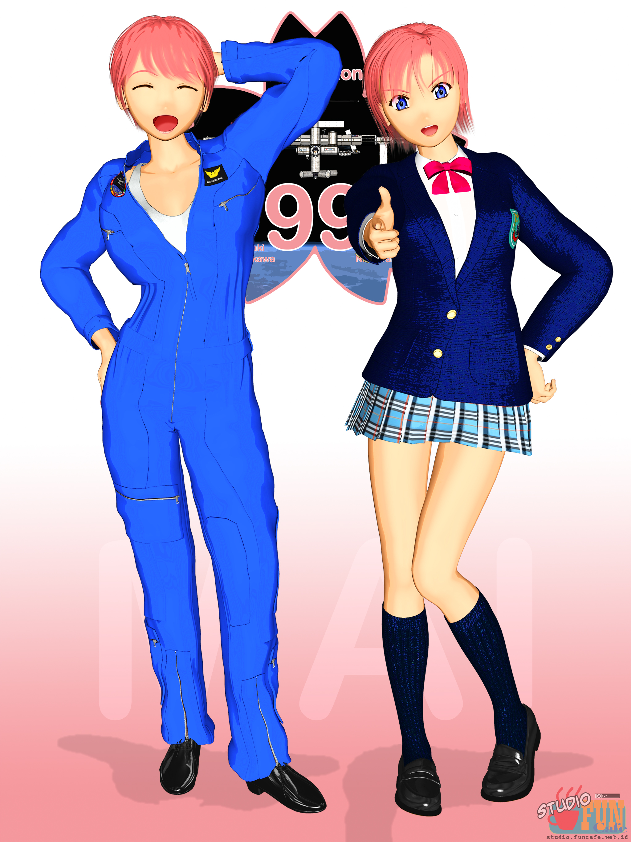 These are the current version and the older version of the character. The older was the first version but re-textured to match the current version. The initial version has brown eye color, but in here I changed into blue as the current version.