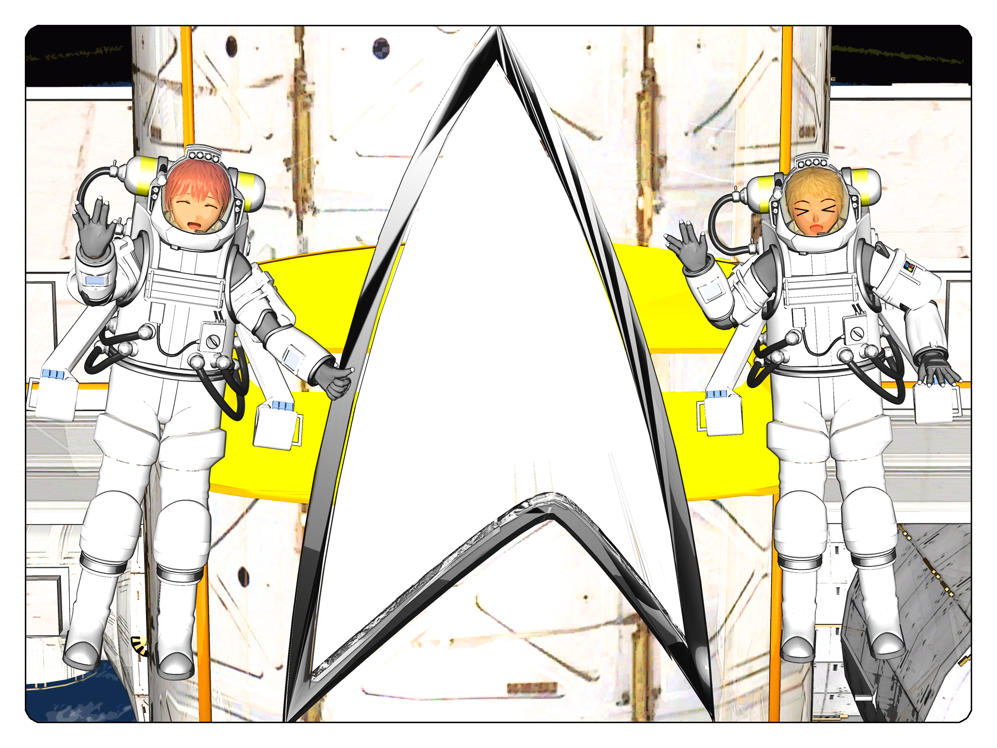 | Title: To Boldly Go... Finished: May 24, 2023 This is the continuing of the previous work. After finished installing the Starfleet emblem, our girls made a memorial photograph with the famous Vulcan salute: "live long and prosper!". This work also used to show my support on making "Star Trek Legacy" as the sequel of "Star Trek Picard". Hope they really make it into a show. |